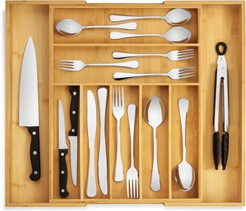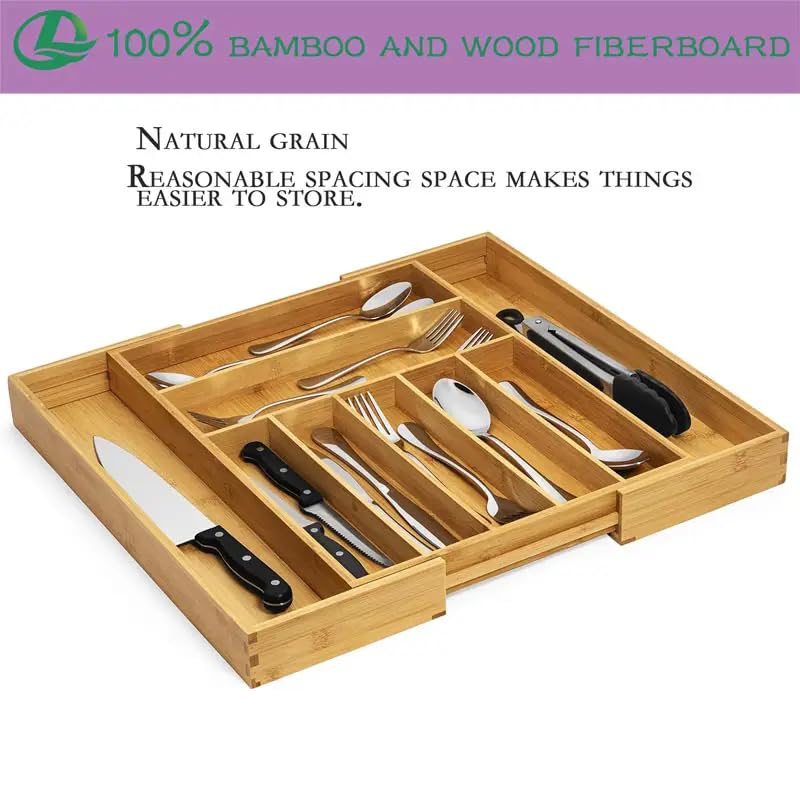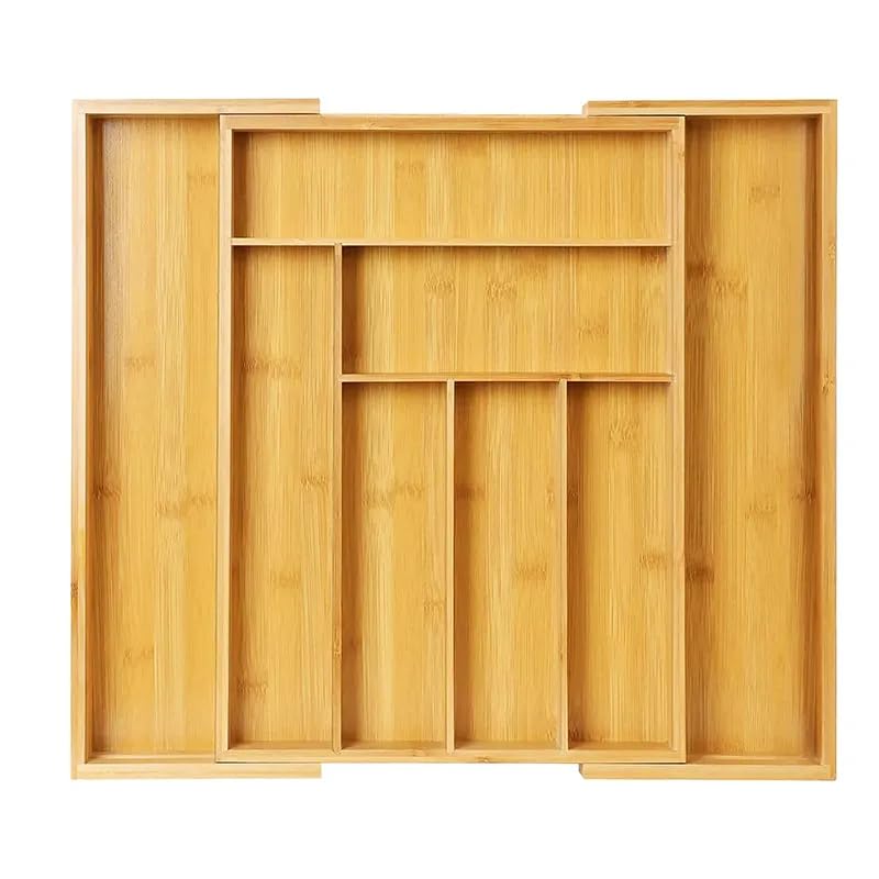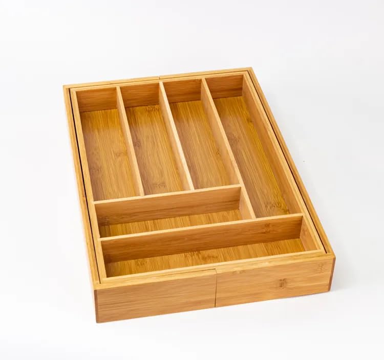 - Bamboo Extending Cutlery Drawer 6-8 Adjustable Compartments Naturally Durable & Water Resistant Tray Wooden Kitchen Organiser M&W
