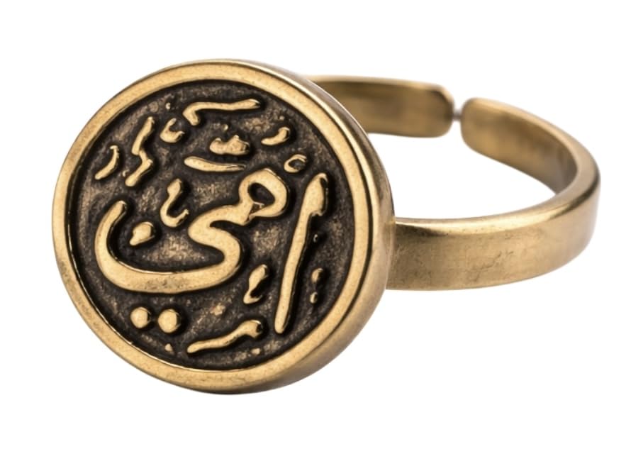 Generic - خاتم للخط العربي، لون ذهبي، سوار قابل للتعديل، تصميم عملة معدنية، مجوهرات مميزة