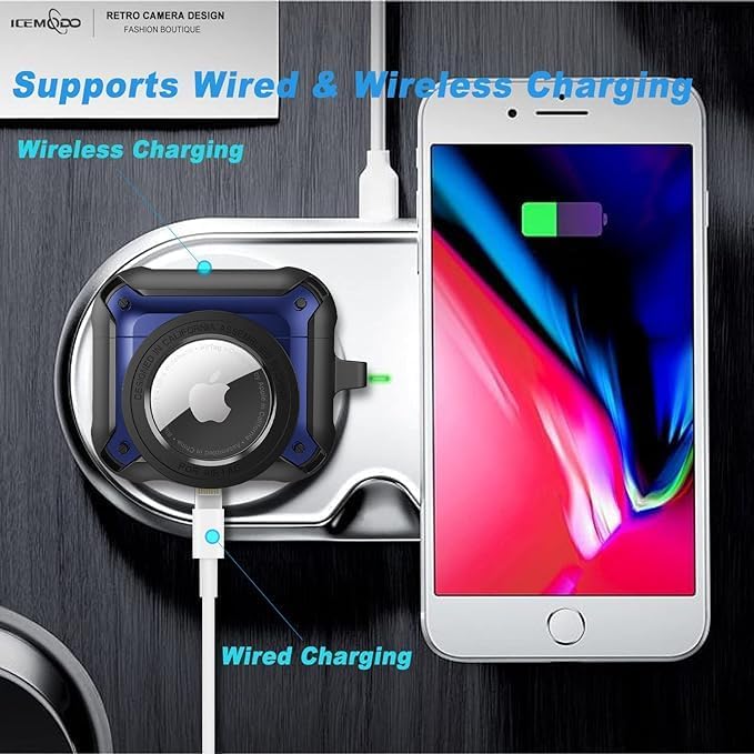 ELMO3EZZ - ذArmor Case Compatible with Airpods 3rd Generation Case with AirTag Cover Support, Cute Camera Design with Carabiner for Men Women - Tracking Device Not Include [BlackBlue]