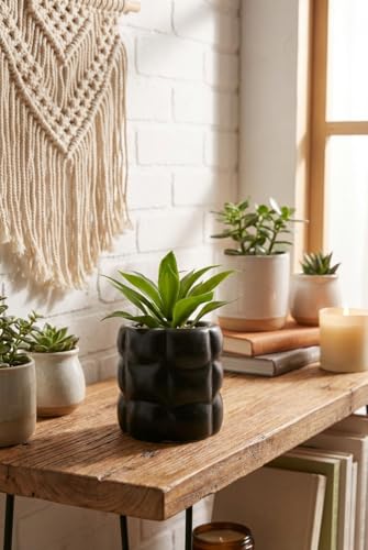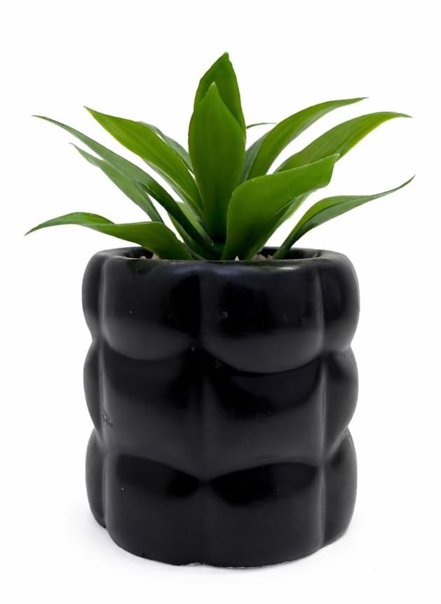 Generic - نبات صناعي ديكور في أصيص أسود مودرن، نبتة صغيرة واقعية للمكاتب والطاولات