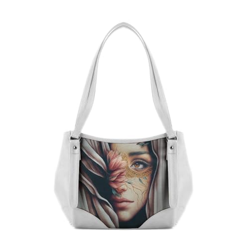 Generic - Artistic Floral Design Leather Tote Bag, White