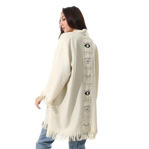 Coctail - Artistic Linen Kimono with Eye Print, Fringe Hem-1442