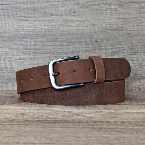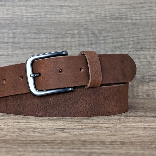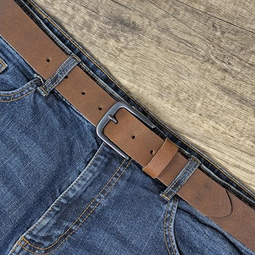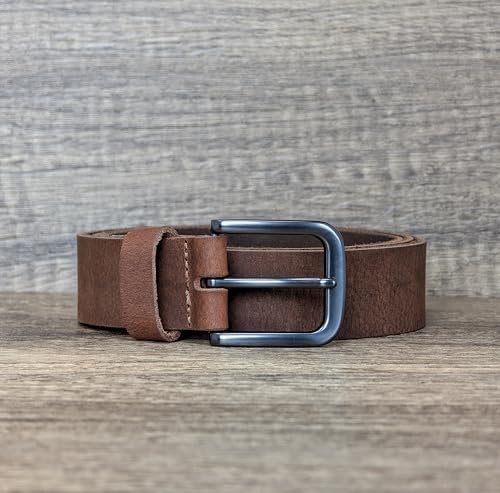 Ashford Ridge - Ashford Ridge England Mens Fashion 34mm (1.25") Real Leather Trouser Belt, Vintage Brown, 36-40W/L