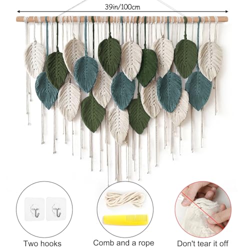 - ❣【خامة عالية الجودة】 تم صنع نسيج المكرمية على شكل ورقة شجر وشراشيب بدقة من خامة القطن الخالص وأعمدة خشبية عالية الجودة. نسيج مكرمية منسوج يدويًا، صناعة متقنة، بدون مكونات صناعية أو مواد كيميائية، صديق للبيئة، متين للغاية وقوي وثابت. قد تتجعد الأوراق أثناء النقل، قم بتمشيط الشراشيب بلطف وعلقها لبضعة أيام واتركها تنتشر بشكل طبيعي، وستحصل على تعليق أكثر جمالًا على الحائط.