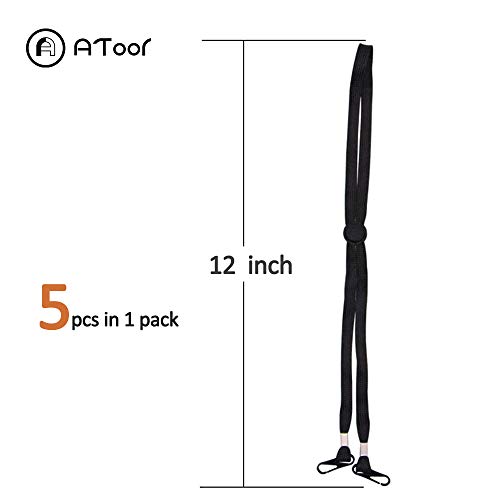 ATool - شريط قصير للكمامة مع مشابك، حبال قابلة للتعديل للاطفال/الطلاب، حبل للقبعات والنظارات (5 قطع، اسود)