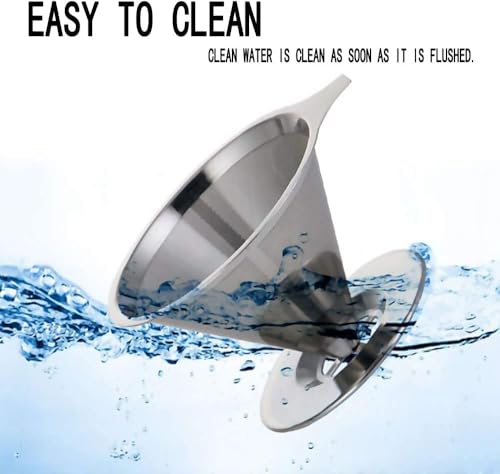 AtrauX - فلتر قهوة للصب بالتنقيط من فولاذ مقاوم للصدأ قمع صب شاي بتصميم سلة شبكية معدنية قابلة لإعادة الاستخدام للمطبخ 14.5 سم اتراوكس