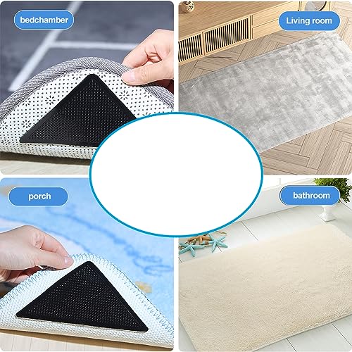 AUTUUCKEE - مجموعة من 8 قطع ملصقات السجاد غير القابلة للانزلاق اوتوكي، لاصقات سجاد قابلة لاعادة الاستخدام والغسل للأرضيات الخشبية الصلبة والبلاط والسجاد والحصائر الأرضية، مع فرعية (أسود)، بولي يوريثان