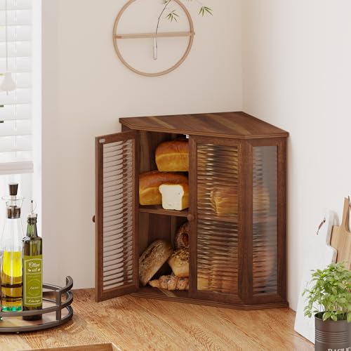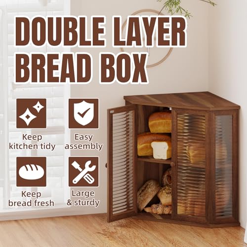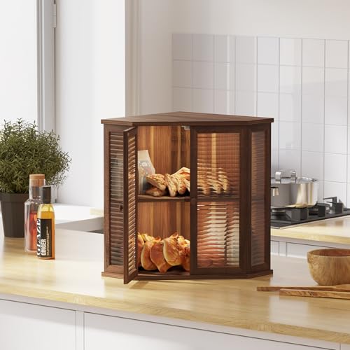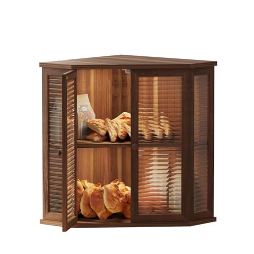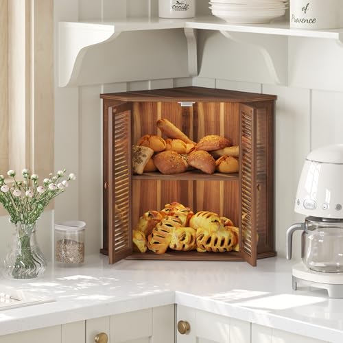 Aycarzcy - صندوق خبز زاوية لطاولة المطبخ من ايكارزسي، حاوية تخزين خبز خشبية كبيرة للخبز المنزلي (خشب اكاسيا)
