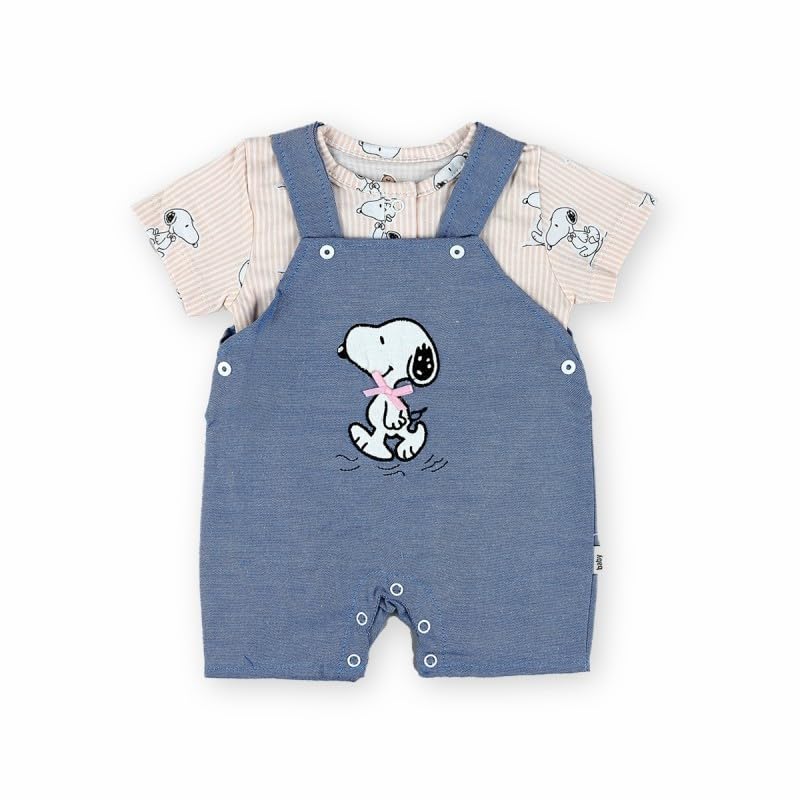 - طقم رومبر للأطفال - سالوبيت بكباسين من القطن الناعم وافرول بدون أكمام