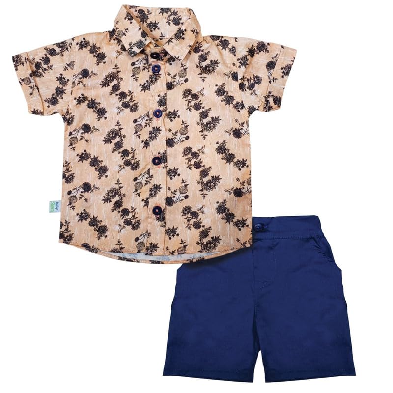 Baby Shoora - قميص نصف كم وشورت مطبوع عليه زهور للاولاد (عبوة من قطعة واحدة)