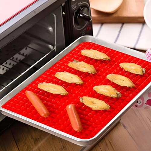 Generic - Baking Sheets - Non-Stick Silicone Mats with Red Pyramid Design for Versatile Cooking, Including Grilling, Microwave Use, and Baking Pastries, Size 40 * 27 cm