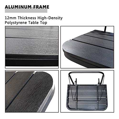 - 【Rust-Proof Poly Lumber Table Top】Small balcony hanging railing table is designed with 12mm thickness poly lumber table top. Poly lumber is the high density polyethylene, UV resistant and color protracted, it has the look of painted wood but without the upkeep real wood requires, no need painting or staining, durable and all-weather, LOW maintance not prone to crack, chip, peel, or rot, constructed with aluminium frame makes it more stronger, more durable