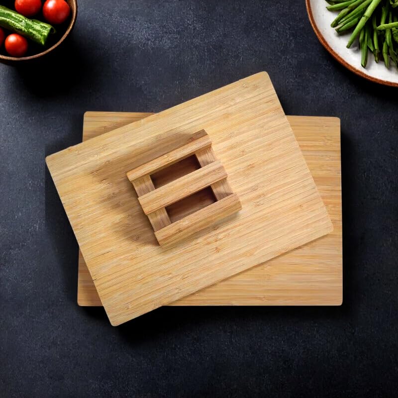 - ألواح تقديم بمقاسين: يأتي لوح التقطيع المصنوع من الخيزران الخاص بنا في طقم مكوّن من قطعتين بمقاسين عمليين 35×30 سم و38×28 سم، ليكون أداة مطبخ متعددة الاستخدامات تلبّي جميع احتياجات التقطيع وتحضير الطعام وحتى التقديم بكل سهولة. يوفّر مقاسًا مناسبًا لكل احتياج، المقاس الصغير مثالي لتقطيع الفاكهة بسرعة والخضروات المتنوعة، والمقاس الكبير مناسب لتقطيع وفرم اللحوم كاملة وفرد العجين أو حتى استخدامه كلوح تقديم للمقبلات.