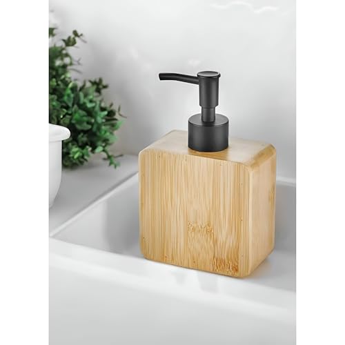- A stylish, multifunctional wooden dispenser made from bamboo, designed to keep soaps, creams and other liquids neatly organized in one durable unit.