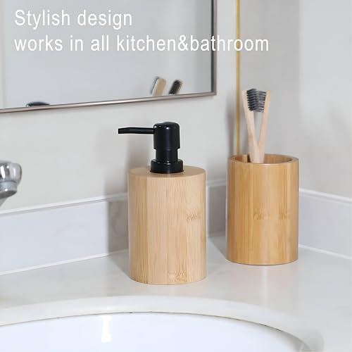 Generic - Bamboo Soap Dispenser - Refillable Liquid Soap Pump for Kitchen, Bathroom, and Laundry Room, Eco-Friendly Hand Soap Container with Durable Wooden Design and Easy Refill