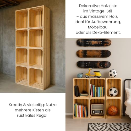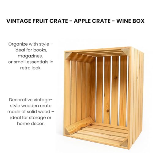 - Versatile: the boxes are universal. They can be used as fruit crates in the kitchen, wine crates in the living room and even in the cellar as wooden potato crates. You can put it on the shelf of the bookshelf.