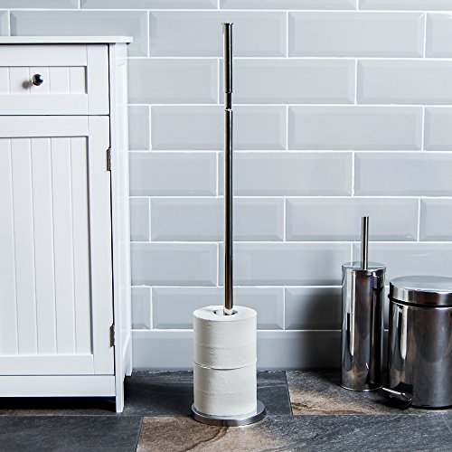 - The Bath vida Toilet Paper Holder is a freestanding bathroom stand made from high-quality stainless steel, providing durability and sturdiness to ensure long-lasting use.
