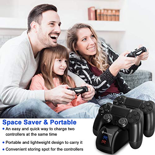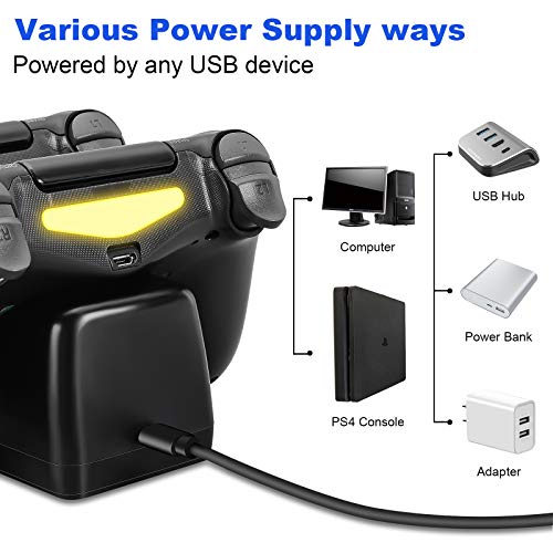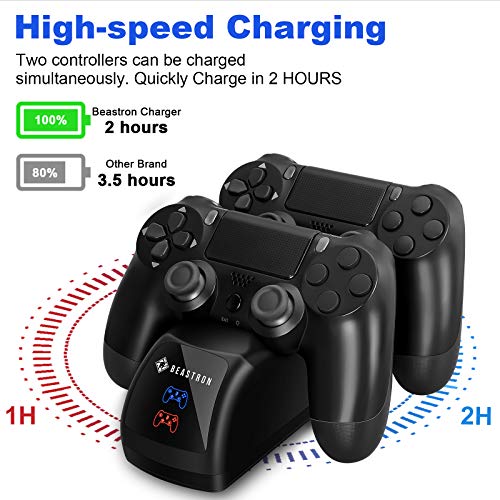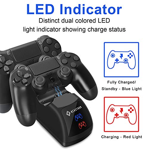 Beastron - قاعدة شحن مزدوجة USB لوحدات تحكم سوني PS4، قاعدة توصيل مع حامل خلفي للشحن ومؤشر ضوئي ليد متوافق مع بلاي ستيشن 4 PS4 من بيسترون، لون أسود