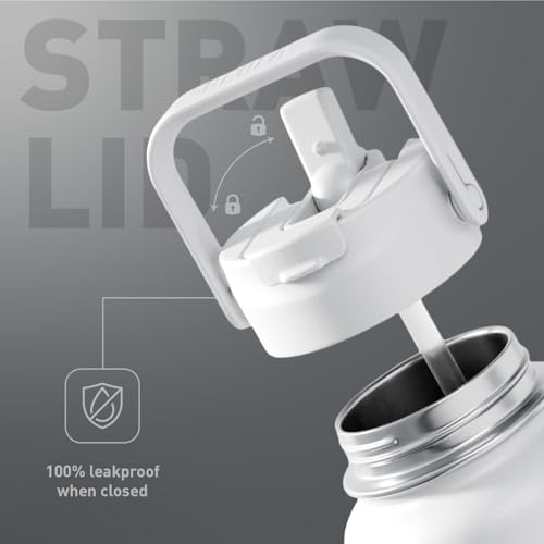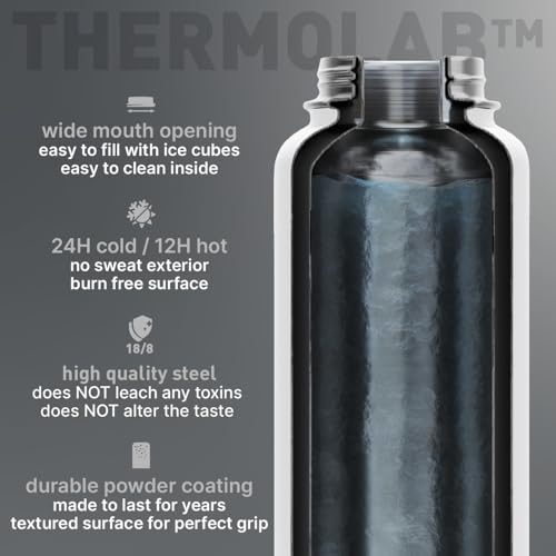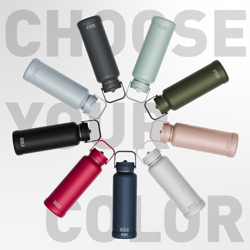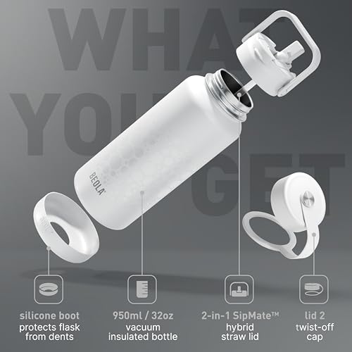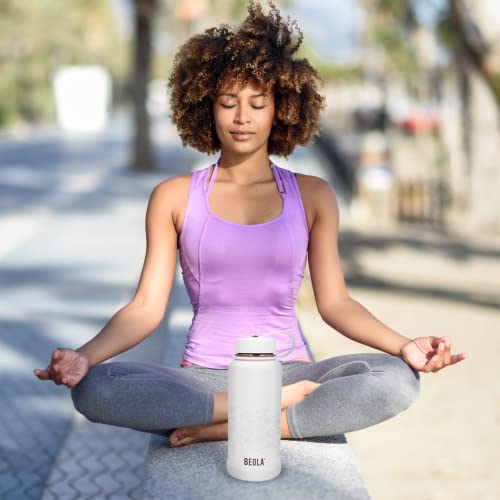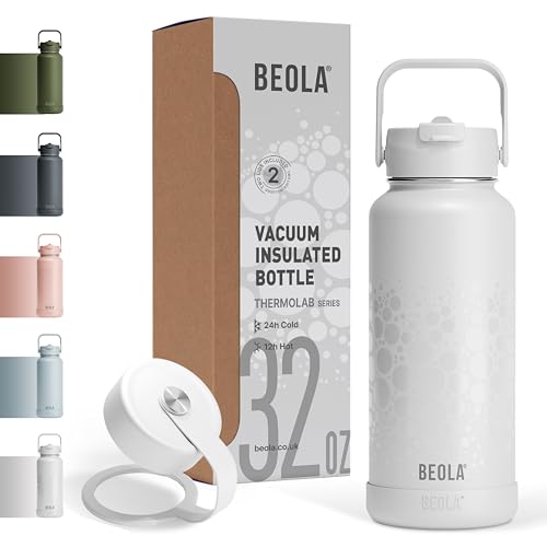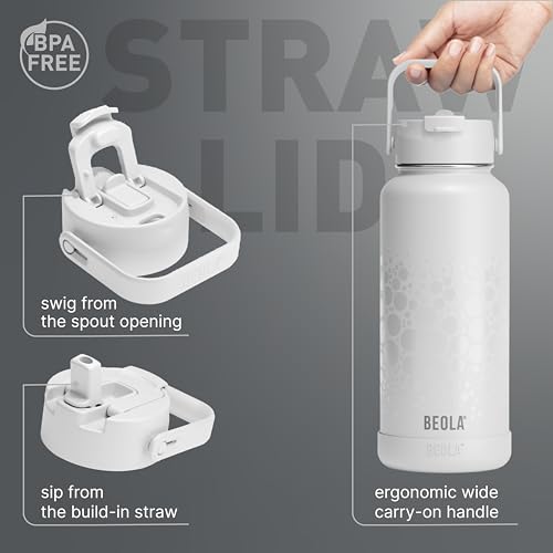 BEOLA - زجاجة مياه سعة 950 مل من الفولاذ المقاوم للصدأ 18/8 304 بجدار مزدوج معزول مع غطاء بشفاطة وفوهة واسعة، 2 غطاء متضمن، زجاجة مياه رياضية للسوائل الساخنة والباردة من بيولا