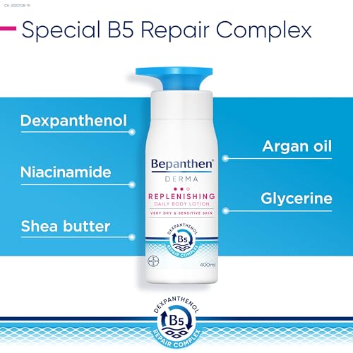 - Simple to apply and suitable for a variety of skin types Bepanthen DERMA Restoring Daily Body Lotion provides up to 48 hours of moisture, repairing and restoring skin barrier function to prevent re-occurrence of dryness. Visibly reduces flakiness, roughness, dry patches and cracked skin.