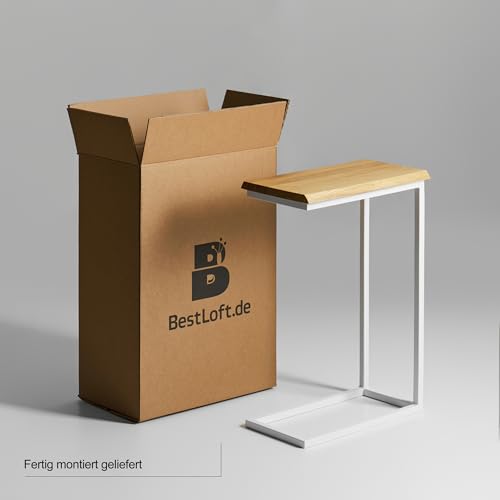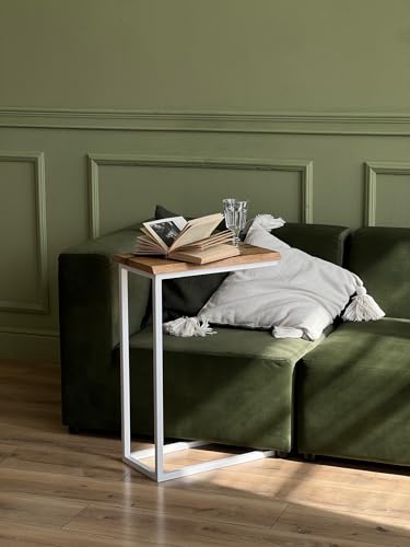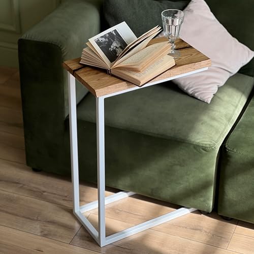 BestLoft.de - BestLoft.de Small Side Table Couch Black White Wood Laptop Table C Shape Sofa Table Side Table Tray Table Oak Bed Table Bedside Table High Laptop Table for Couch Small Living Room Table (CWHB-W)