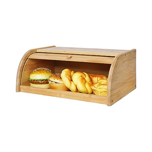 bimiti - bimiti Bamboo Bread Box for Kitchen Countertop Natural Bamboo Roll Top Wood Bread Box Single Layer Bamboo Large Capacity Bread Storage Bin Kitchen Food Storage Container, Self-Assembly