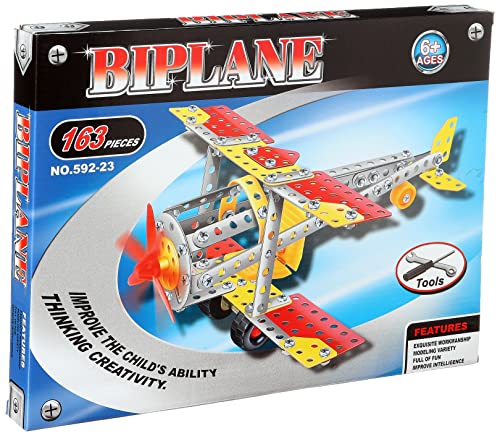 gaoerjiefu - مجموعة العاب بناء بتصميم طائرة بجناحين مكونة من 163 قطعة، معدن