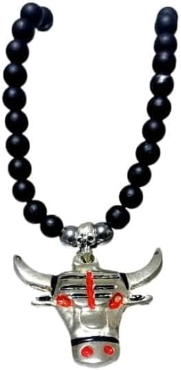 Generic - عقد مطرز بالخرز الاسود مع دلاية على شكل ثور، حلية معدنية فضية، لمسات حمراء