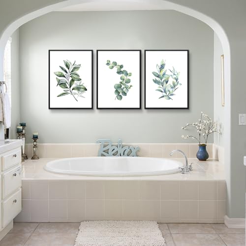 hyidecorart - Black Framed Canvas Wall Art For Living Room Large Size Wall Decor For Bedroom Green Leaves Wall Paintings Office Wall Pictures Kitchen Wall Decoration Bathroom Decor Set Of 3 Piece Framed Art Prints