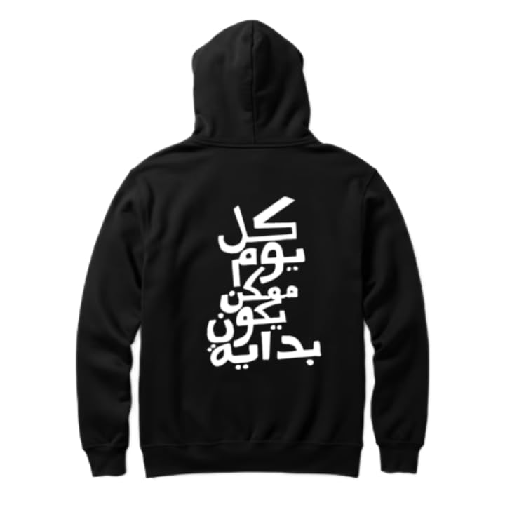 Generic - Black oversize Youth hoodie back art over size TEXT job work(كل يوم ممكن يكون بدايه)117