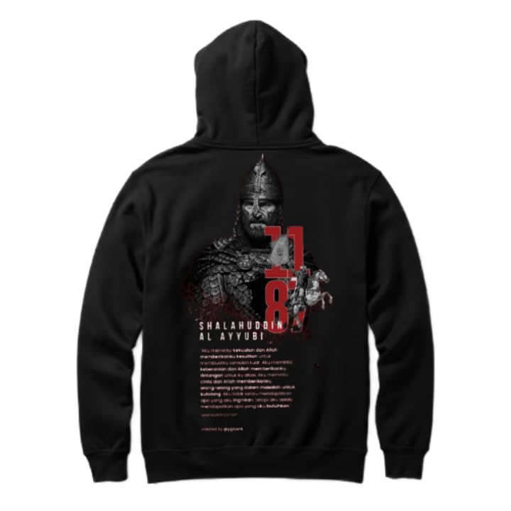 Generic - Black oversize Youth hoodie back art over size TEXT job work (shalahuddin al ayyubi)112