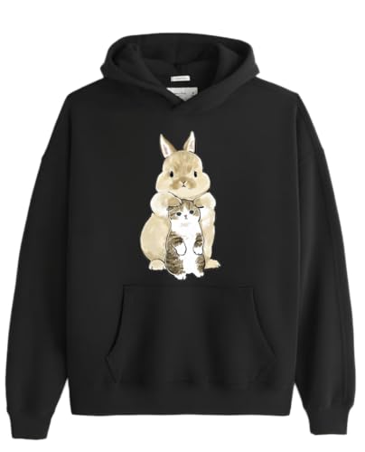 Generic - Black oversize Youth hoodie over size kitty kitten kawaii cute cat 20 bunny