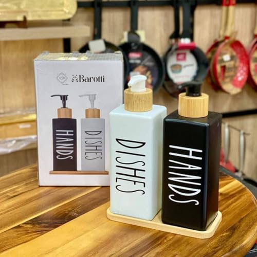 Generic - 床床 Black & White Glass Dispenser Set 2 in 1 with Bamboo Stand