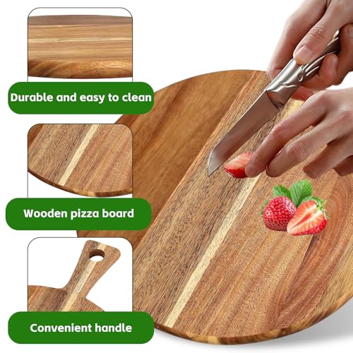 BORDEAG - Wooden Pizza Plate, Chopping Board with Handle, Pizza Board Diameter 30.5 cm, Large Pizza Plate, Round Chopping Board with Handle, Pizza Tray for Wooden Chopping Boards, Cheese Board