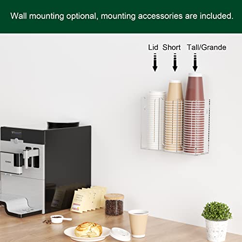 - موزع أكواب القهوة - يستوعب أكواب الورق/البلاستيك ذات القطر 9 سم بسعة 295 مل، 355 مل، 473 مل، يقوم حامل أكواب القهوة الاكريليك بتنظيم الأكواب الورقية المكدسة والأغطية. لا توجد منحنيات حادة، حواف دائرية من جميع الجوانب، لا تقلق أبدًا بشأن خدش أصابعك.