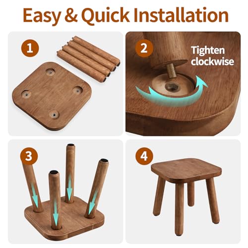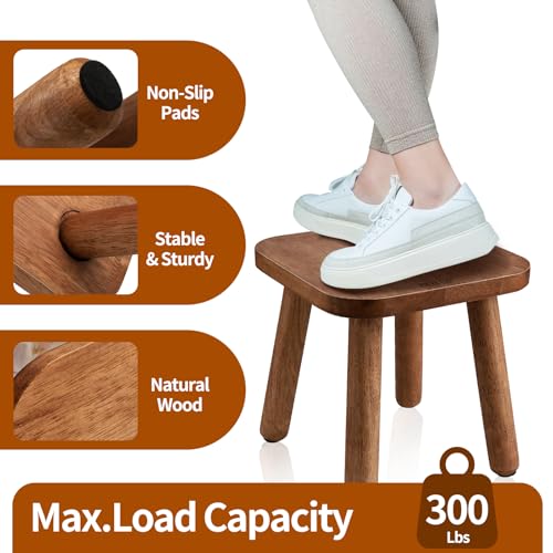 BOTOP - مقعد خشبي صغير، مقعد لطيف غير قابل للانزلاق بخطوة واحدة للبالغين والاطفال، سهل التجميع ومحمول ومتين لغرفة النوم والحمام والمطبخ - 9 انش يحمل ما يصل الى 300 باوند