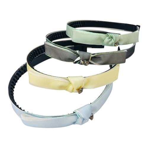 Generic - عصابة رأس مزينة بفيونكة، طقم ٤ قطع، ألوان أبيض ورمادي وأصفر فاتح وأخضر فاتح