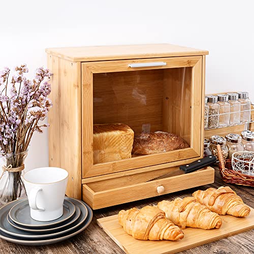 - BAMBOO BREAD BOX-The combination of high quality material and superb workmanship, which will protect bread from getting crushed or nibbled by your cute pet and keep bread and dry goods fresher for longer.