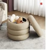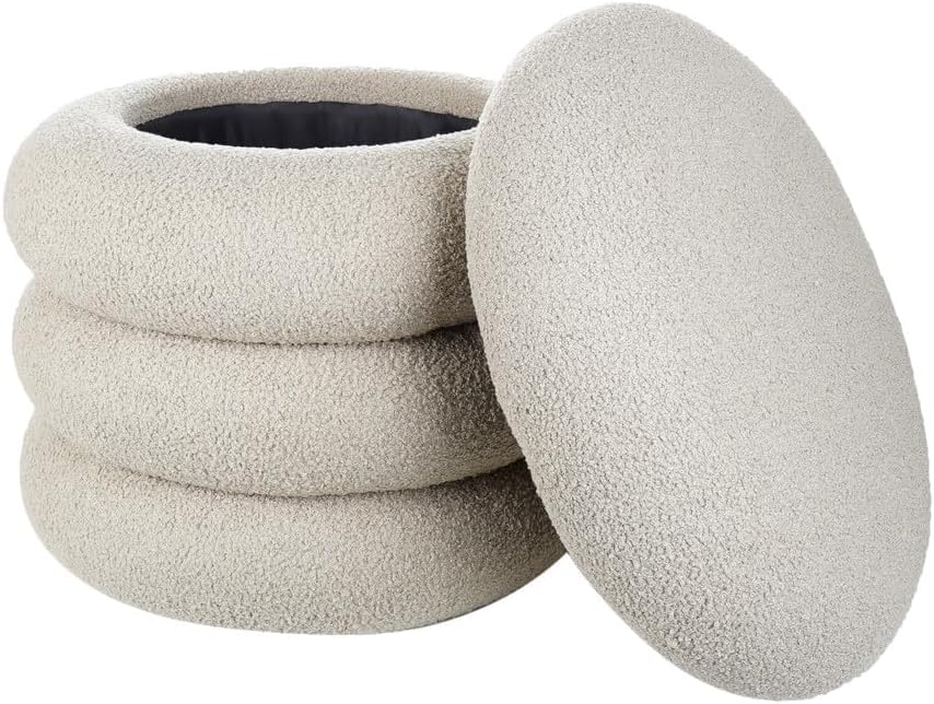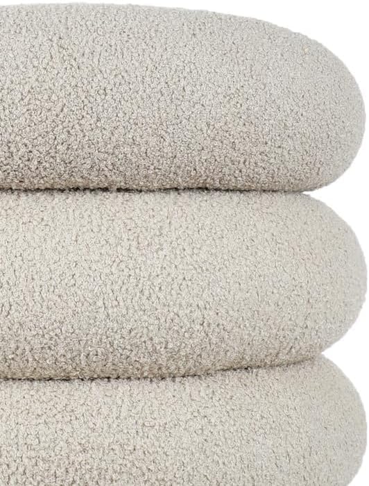 Generic - Bugatti Round Pouf – 50 x 50 cm – Panda Fabric, Natural Wood Counter Structure – Modern Design with Wooden Legs by No Comment Furniture (Greige)