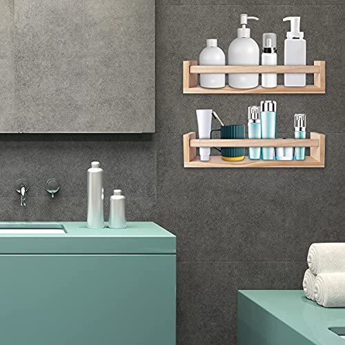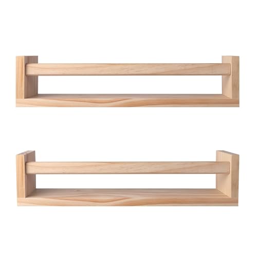 Bukela - 2Pcs Floating Wall Shelves Naturel Wood Floating Wall Bookshelf Nursery Bookshelves for Bathroom Decor Kitchen Spice Rack Bookshelf Organizer