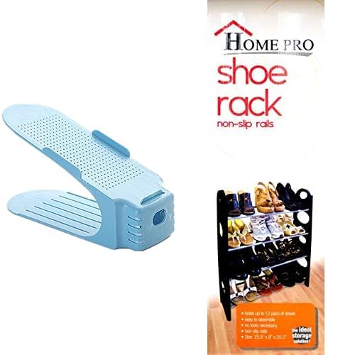 Generic - مجموعة من 10 قطع من منظم فتحات الاحذية باللون الازرق + رف احذية هوم برو، 6 طبقات