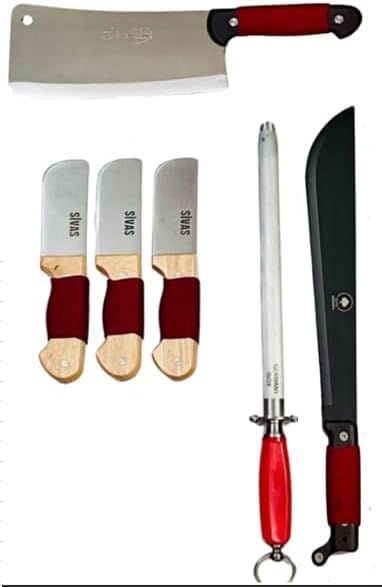 - Heavy-Duty Cleaver: Effortlessly breaks calves’ bones and tough meat Durable Stainless Steel: Long-lasting, corrosion-resistant, and strong Sharp Knives Included: Perfect for slicing meat and poultry Ergonomic Handles: Non-slip grip for safe and comfortable use Multi-Purpose Use: Suitable for home, Eid al-Adha, and professional butchers