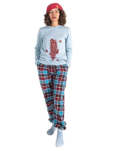 Generic - بيجامة من سيه سا للنساء، بتيشيرت بطبعة صبار، بلون ازرق فاتح، مقاس L، CW1610