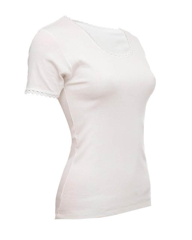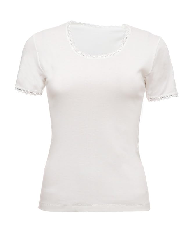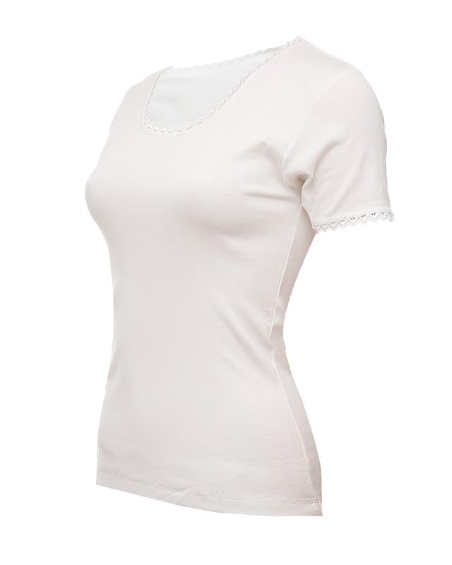 C&K - C&K Cotton Half Sleeves Embroidered Lace Undershirt Size 50 For Women - Off White