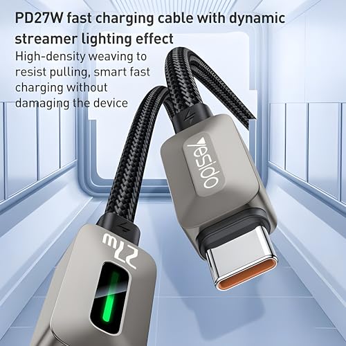 - [Dynamic Streamer Light]: The cable has a great moving light effect that visually shows the charging status, giving it a fashionable and attractive look while in use. This feature makes it easy to follow up charging in dark or night, and adds a distinctive touch to your daily usage experience with a sleek and stylish touch.