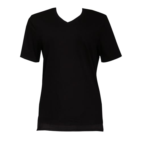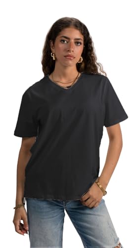 CAMICIE ESSENTIALS - تيشرت مصنوع من القطن بقصة على شكل حرف V مع فتحات جانبية للنساء من كاميسي اسينشيالز