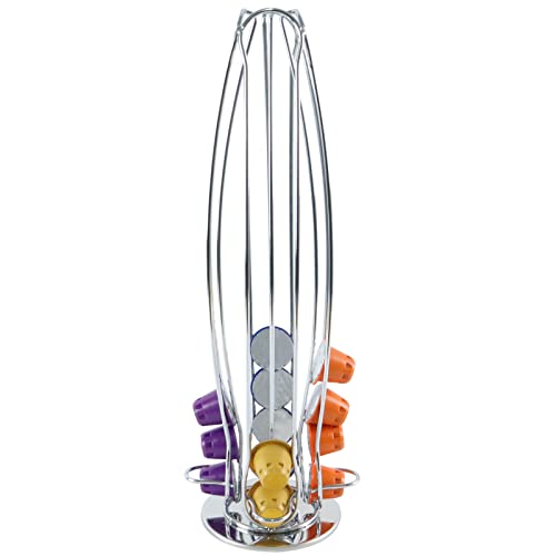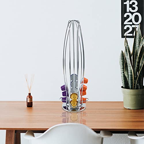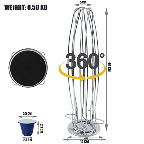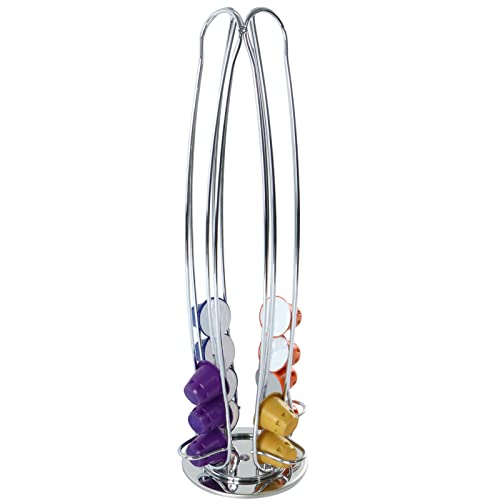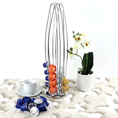 KasaStar - Capsule Holder for Coffee in Chrome Metal, 4 Row Swivel Holder for 40 pods of Ø 37 mm, Compatible with Nespresso Capsules (Chrome Vertical)