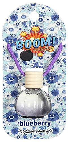 BOOM - Car Air Freshener on Mirror with Fragrant oils with Wooden Diffuser Lid ,Blueberry , Transparent