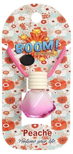 BOOM - Car Air Freshener on Mirror with Fragrant oils with Wooden Diffuser Lid ,Peach , Fuchsia