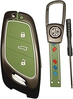 Generic - Car Key Cover Metal Shell with Soft Silicone – Compatible with Kia Seltos Sonet Carens – 3 Buttons Flip Remote Key Fob – 360° Full Protection with Stylish and Stylish Design